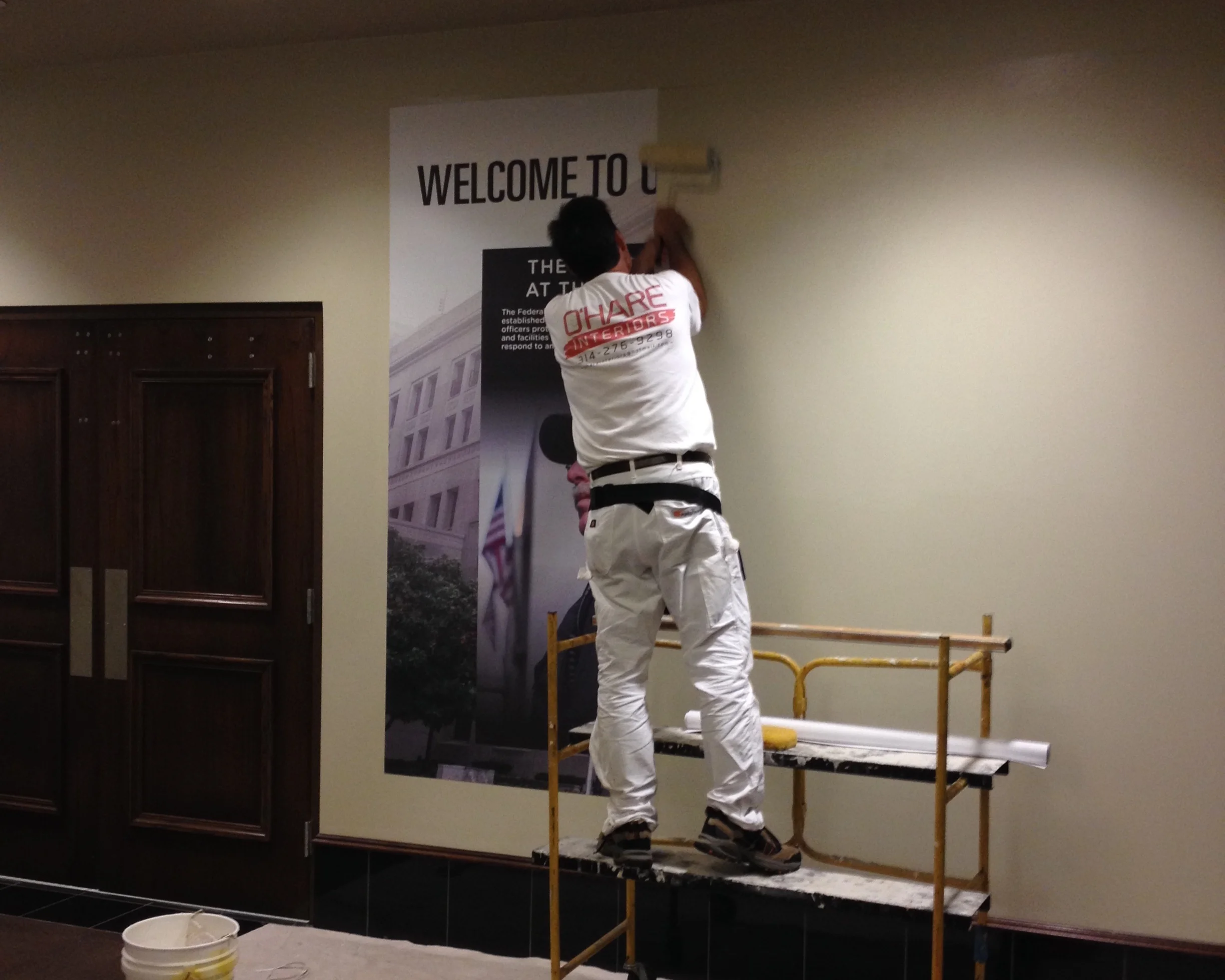 As shown in the photos above, thankfully I don’t have to install all of the art that I create or print. There are amazing contractors like Dan O’Hare of O’Hare Interiors that have already mastered the craft of installing wallpaper.