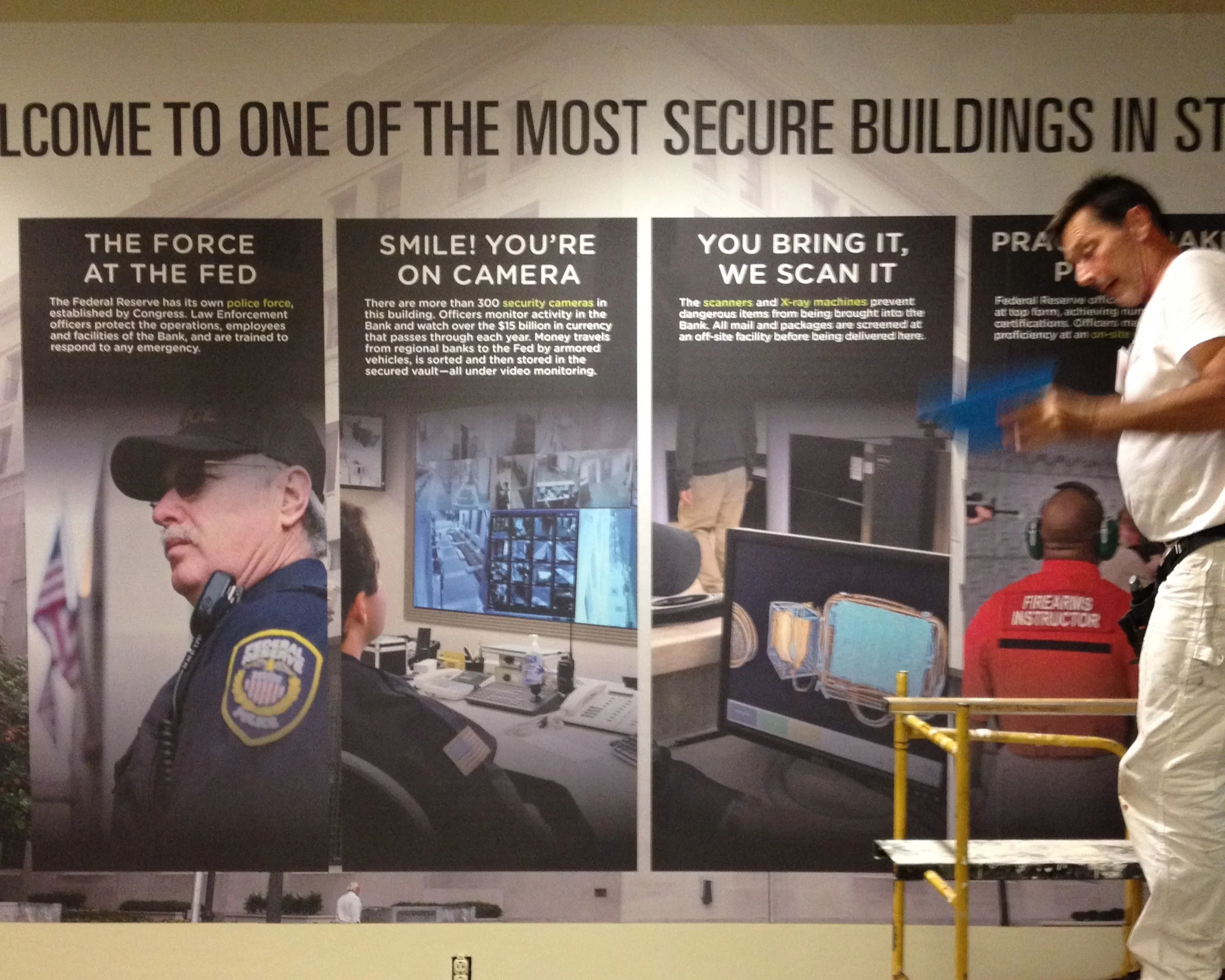 While the student groups wait for all of their classmates to finish the entry process, they get to learn about the Federal Bank Police Force and immense security.