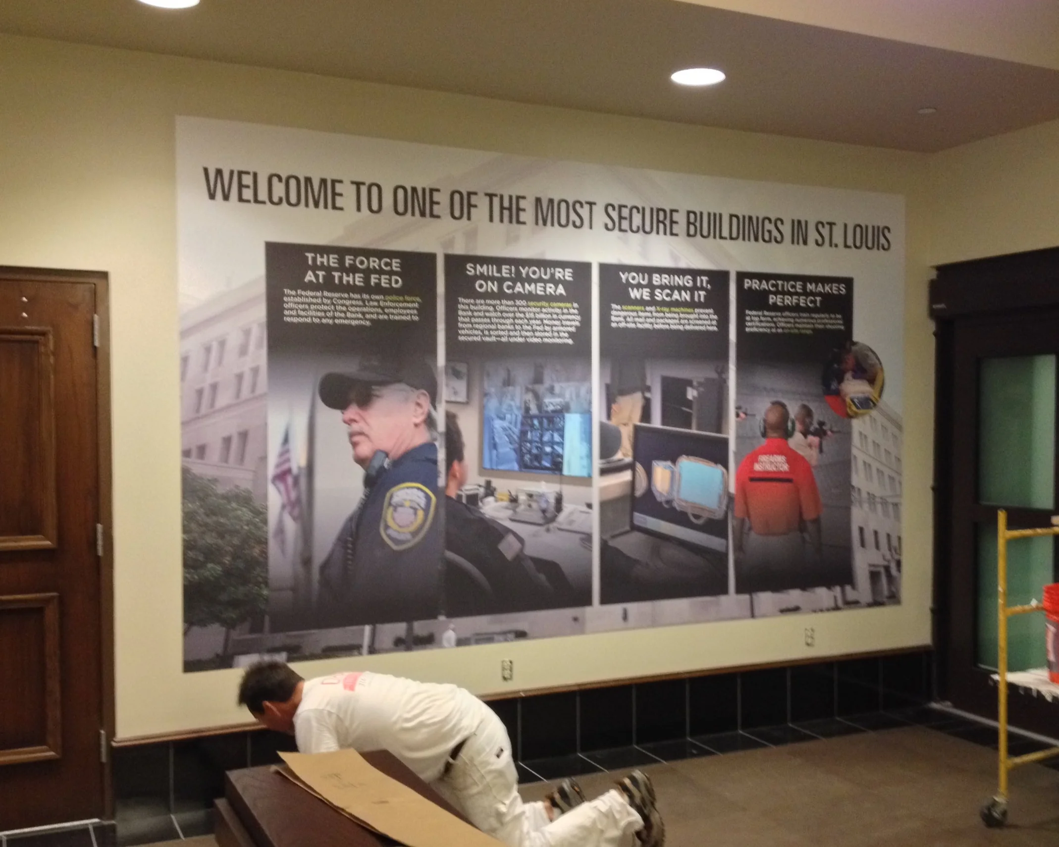 The Federal Reserve Bank of St. Louis is the highest security building in Missouri. The graphic shares details about the 300+ camera security system, all items are scanned before entry and the impressive onsite Federal Police Force shooting range.